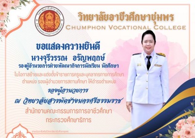 วิทยาลัยอาชีวศึกษาชุมพร ขอแสดงความยินดี
